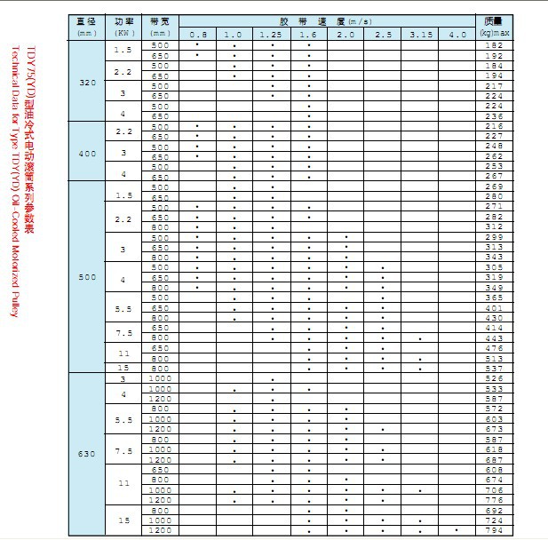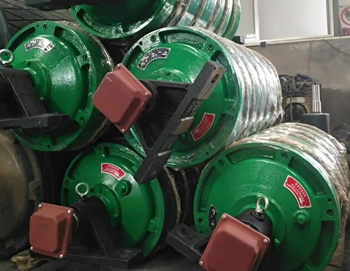 该产品是DT型、DTⅡ型通用固定式胶带机的内驱动装置,其内部采用定轴齿轮二级传动,属于老产品,但用途广泛,与减速机相比较,具有占地小、重量轻、外观整齐、效率高,在粉尘大、潮湿泥泞的恶劣环境下仍能正常工作等优点。随着电动滚筒的不断革新与技术进步,根据需要也可以制成三级减速(0.08-0.63米/秒之间的低带速),以满足用户之要求。